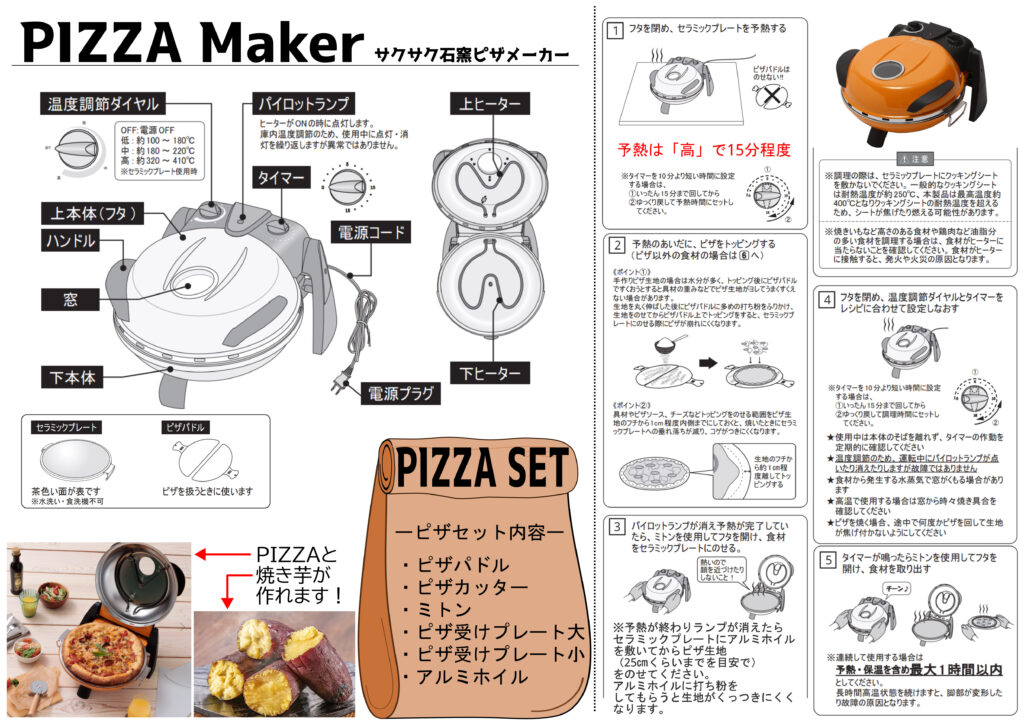 さくさく石窯ピザメーカーの使い方。